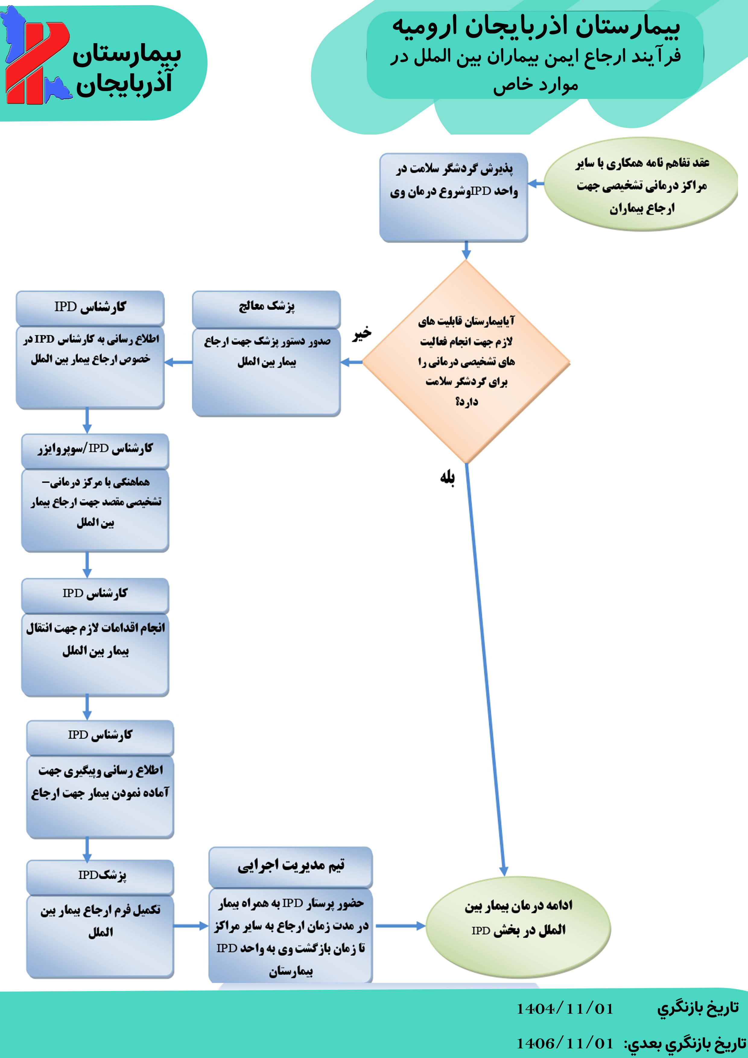 فرآیند تسهیل شده و تحت کنترل جهت ترخیص بیماران بین الملل